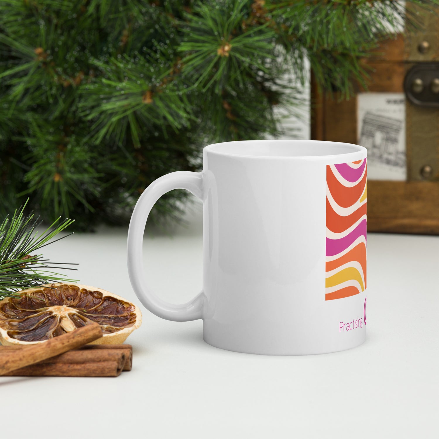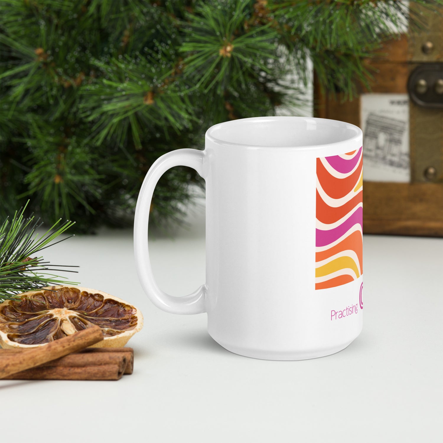 Whether you're drinking your morning coffee, evening tea, or something in between—this mug's for you! It's sturdy and glossy with a vivid print that'll withstand the microwave and dishwasher.